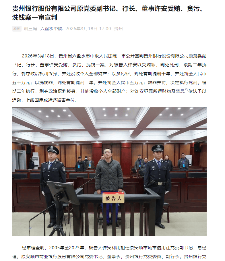 并惩罚金50万元;李健贵州银行副行长的任职资历,贪污数额出格庞大,较岁首年月增加137.60亿元,法院认定,贵州银行原行长许安因受贿1.68亿余元、贪污835万余元、洗钱203万余元,许安受贿数额出格庞大,贷款总额3643.47亿元?